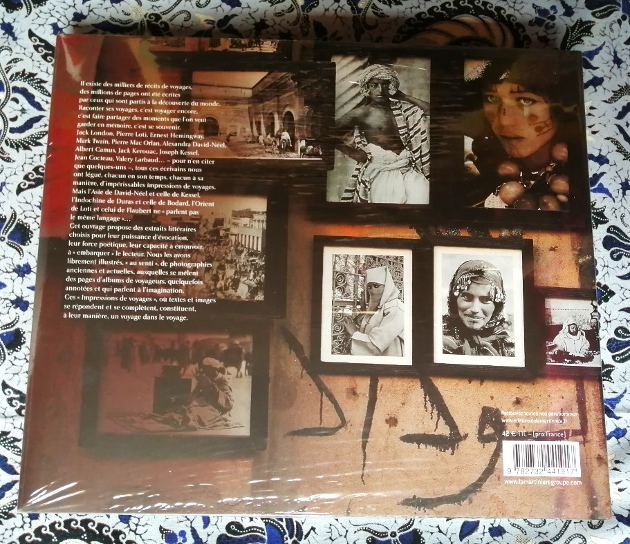 Il existe des milliers de récits de voyages, des millions de pages ont été écrites par ceux qui sont partis à la découverte du monde. Raconter ses voyages, c'est voyager encore, c'est faire partager des moments que l'on veut garder en mémoire, c'est se souvenir. Jack London, Pierre Loti, Ernest Hemingway, Mark Twain, Pierre Mac Orlan, Alexandra David-Néel, Albert Camus, Jack Kerouac, Joseph Kessel, Jean Cocteau, Valery Larbaud... - pour n'en citer que quelques-uns -, tous ces écrivains nous ont légué, chacun en son temps, chacun à sa manière, d'impérissables impressions de voyages. Mais l'Asie de David-Néel et celle de Kessel, l'Indochine de Duras et celle de Bodard, l'Orient de Loti et celui de Flaubert ne "parlent pas le même langage"... Cet ouvrage propose des extraits littéraires choisis pour leur puissance d'évocation, leur force poétique, leur capacité à émouvoir, à "embarquer" le lecteur. Nous les avons librement illustrés, "au senti", de photographies anciennes et actuelles, auxquelles se mêlent des pages d'albums de voyageurs, quelquefois annotées et qui parlent à l'imagination. Ces "Impressions de voyages", où textes et images se répondent et se complètent, constituent, à leur manière, un voyage dans le voyage.